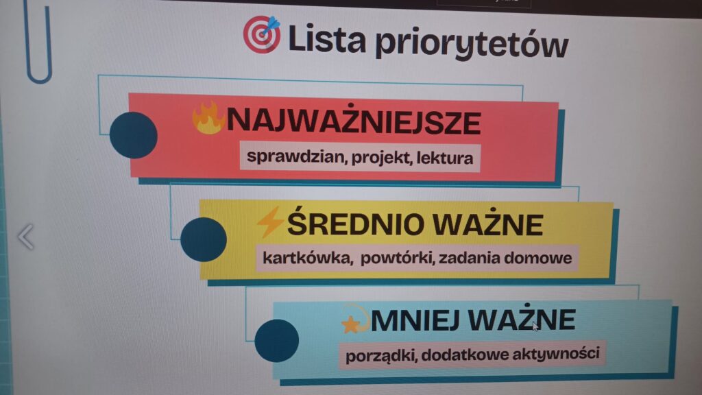 Podczas zajęć klasa 5c odkrywała różne sposoby na skuteczną naukę i dobrą organizację pracy. Uczniowie pracowali m.in. nad: