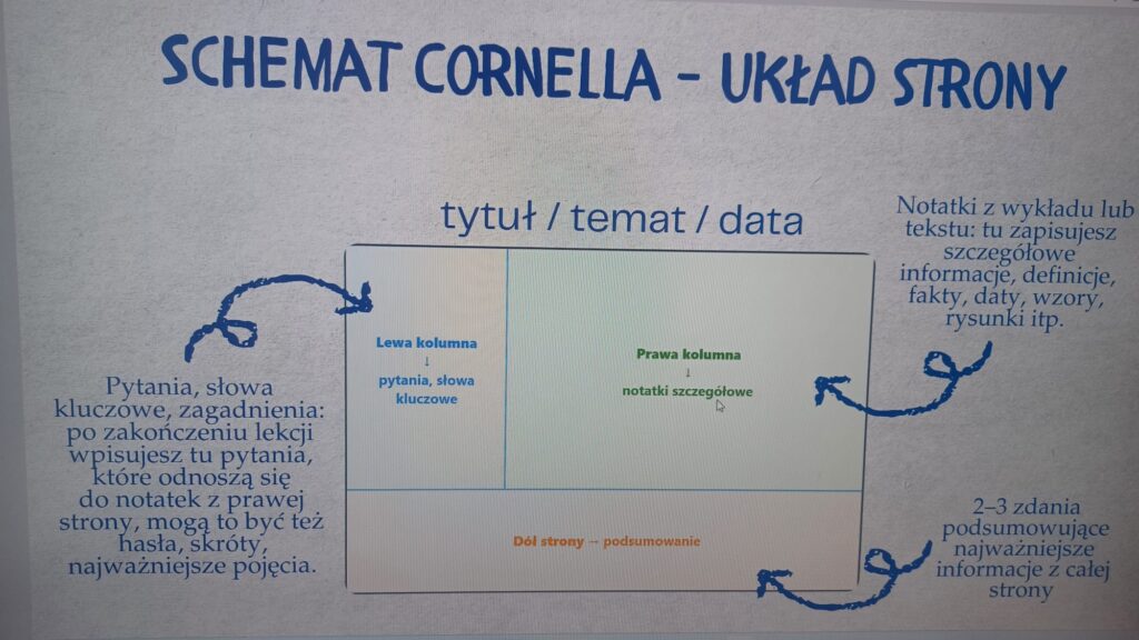 ✔️ notatkami metodą Cornella ✍️
