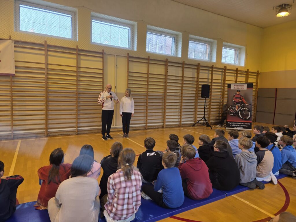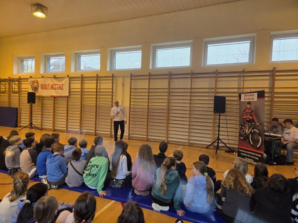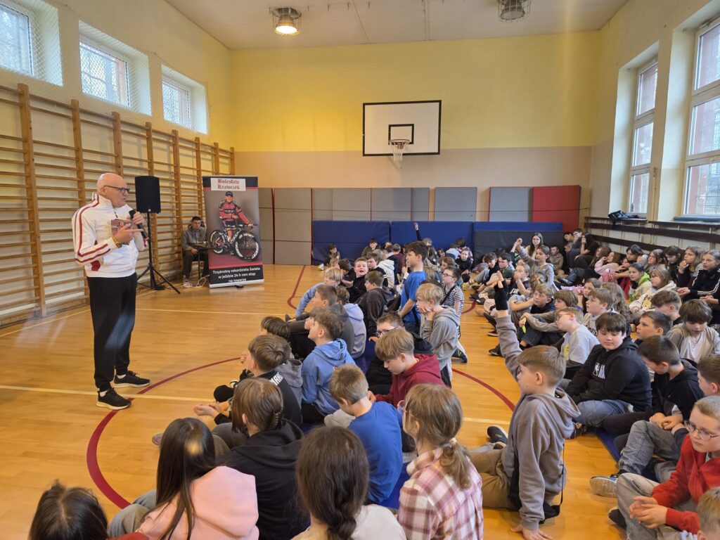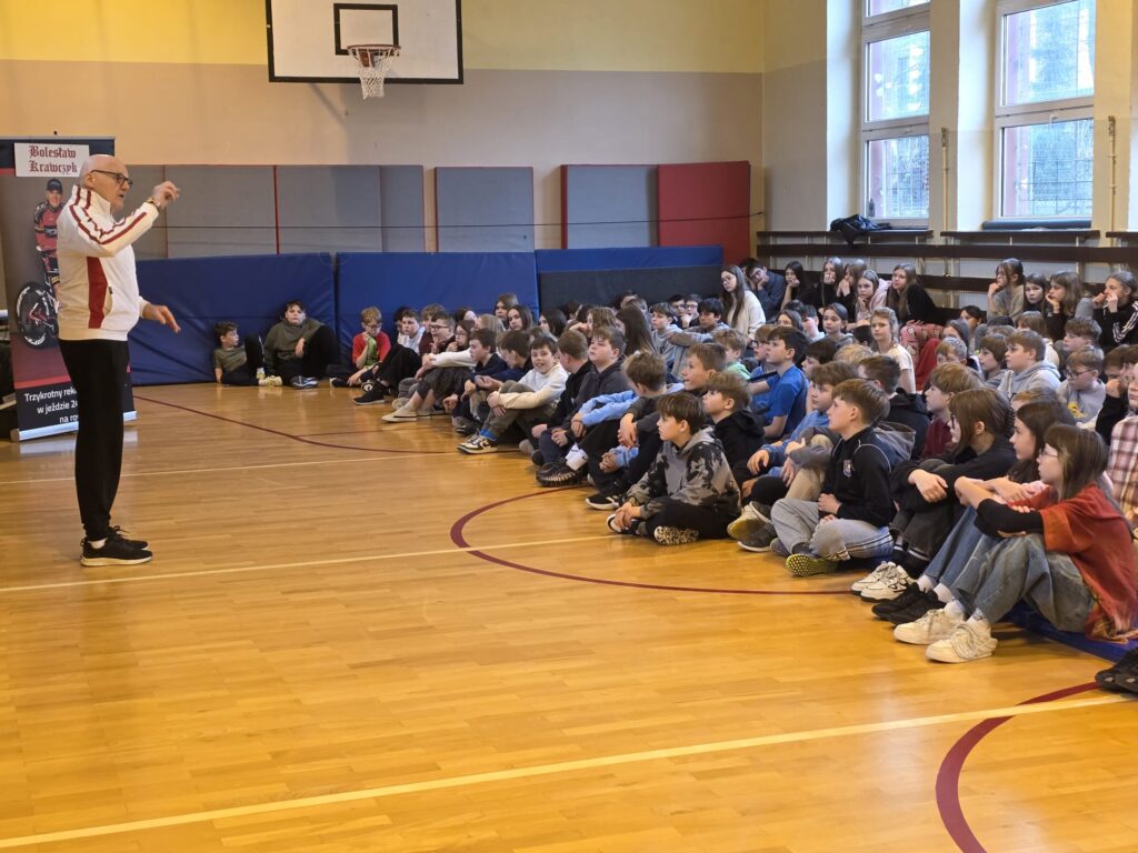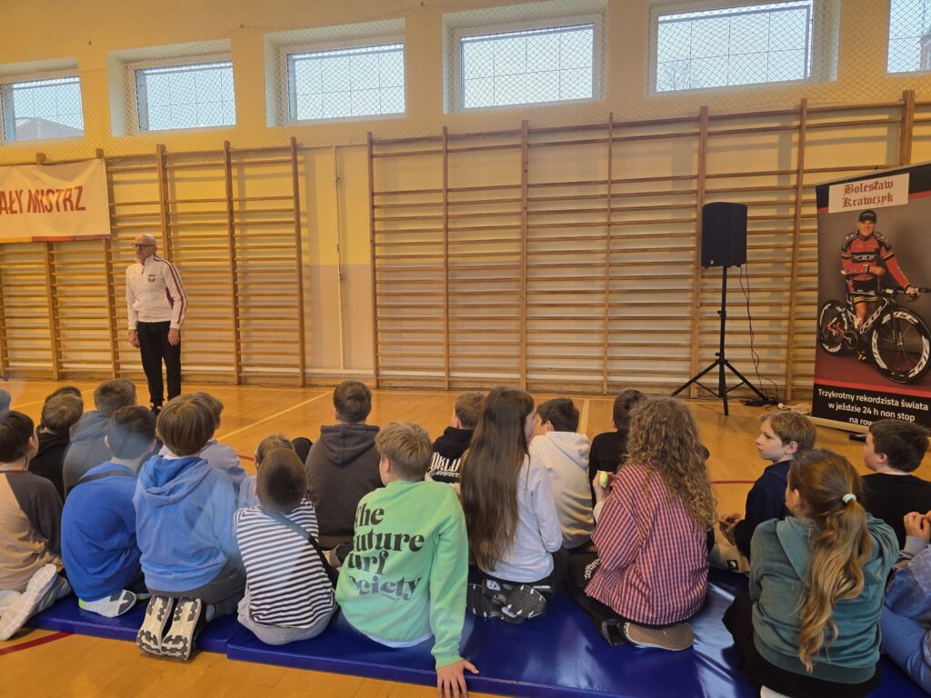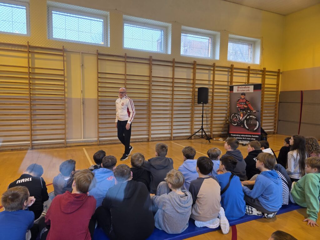 Dziś naszą szkołę odwiedził wyjątkowy gość – Bolesław Krawczyk, trzykrotny rekordzista świata i zdobywca Rekordu Guinnessa w 24-godzinnej jeździe na rowerze non-stop! 💪
